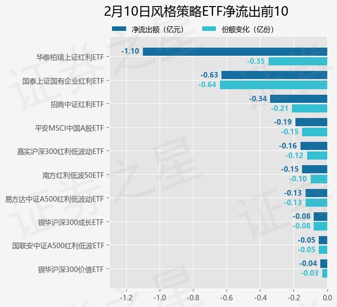 证券之星消息,2月10日风格策略ETF基金合计资金净流出1.8亿元,近5个交易日累计净流出14.1亿元,5个交易日中出现日合计资金净流出的有4天(ETF资金流向计算公式:(当日ETF场内流通份额-前一交易日ETF场内流通份额)*当日ETF均价,计算结果仅供参考)。