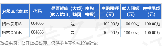 证券之星消息,2月11日格林基金管理有限公司发布《格林日鑫月熠货币市场基金2026年“春节”假期前暂停部分代销机构大额申购、定期定额投资与转换转入业务公告》。公告中提示,为保证本基金的稳定运作,保护基金份额持有人利益,根据《格林日鑫月熠货币市场基金基金合同》、《格林日鑫月熠货币市场基金招募说明书》及其更新的相关规定,本基金管理人决定于2026年2月12日起暂停部分代销机构本基金100万元以上(不含100万元)的申购、定期定额投资及转换转入业务,自2026年2月12日起格林日鑫月熠货币市场基金2026年“春节”假期前暂停部分代销机构大额申购、定期定额投资与转换转入业务,申购、转换转入、定投上限金额为100.0万元,下属分级基金调整明细如下: