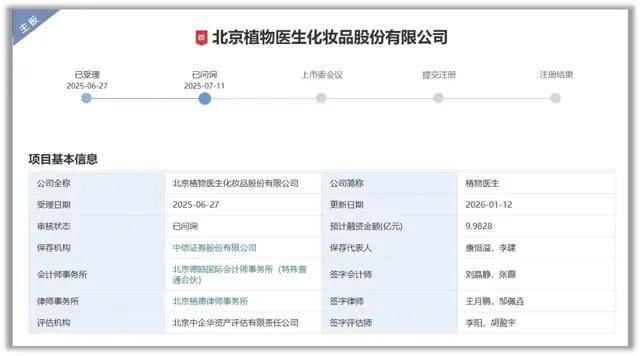 最近,北京植物医生化妆品股份有限公司(以下简称“植物医生”)在2025年9月IPO被中止后又有了新的进展。