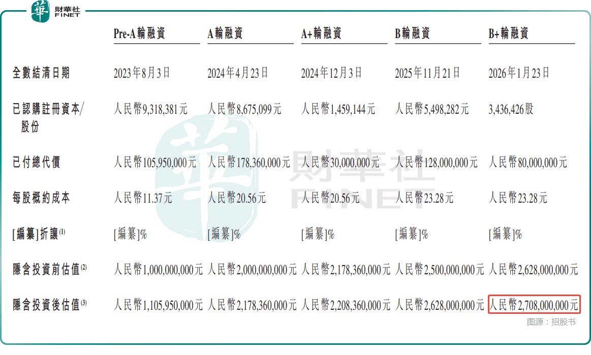 其中,为恒智能于2026年1月完成8000万元融资,投后估值为27.08亿元(人民币,下同)。