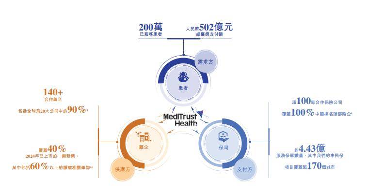 镁信健康定位为医药多元支付平台,主打“医+药+险”融合模式,通过两大核心解决方案——智药解决方案与智保解决方案,试图打通产业上下游闭环,连接药企、保险公司和患者。