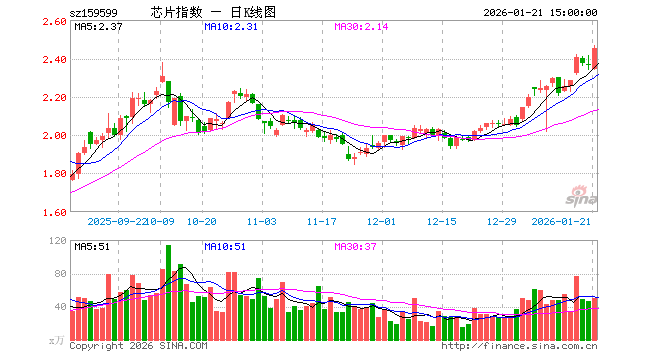 1月21日,芯片ETF东财(159599)涨3.77%,成交额1.24亿元。当日份额减少600.00万份,最新份额为4.80亿份,近20个交易日份额减少1.41亿份。最新资产净值计算值为11.76亿元。