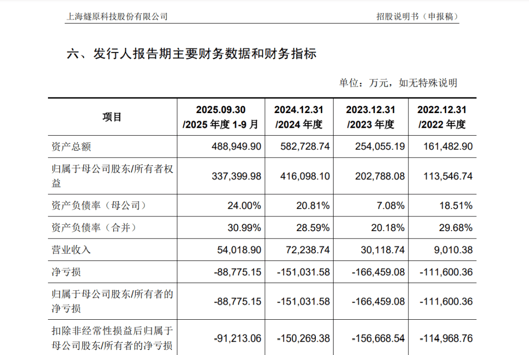 财务数据显示,公司2022年至2025年前三季度分别实现营业收入9010.38万元、3.01亿元、7.22亿元、5.4亿元;分别实现归母净利润-11.16亿元、-16.65亿元、-15.1亿元、-8.88亿元。