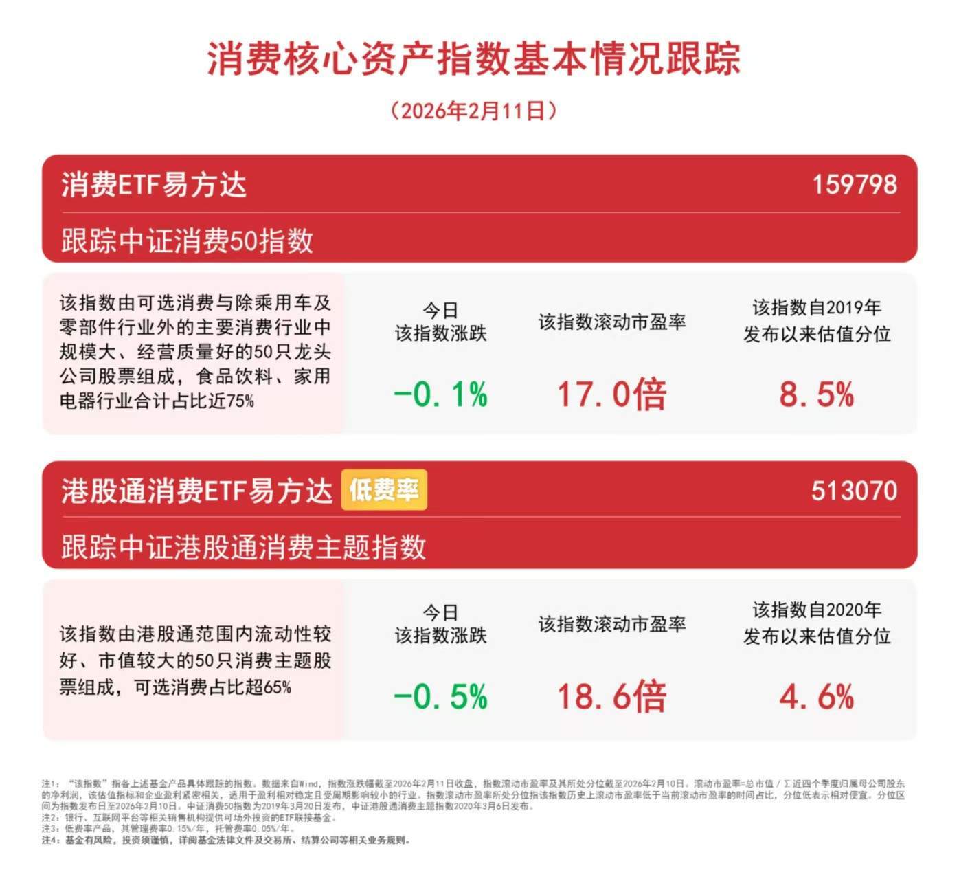 截至收盘,中证消费50指数下跌0.1%,中证港股通消费主题指数下跌0.5%。相关ETF受资金关注,Wind数据显示,截至昨日,港股通消费ETF易方达(513070)近一周连续获资金净流入,合计超7亿元。