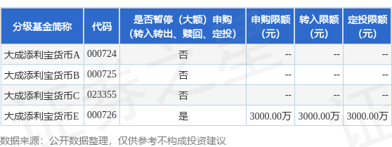 公告速递:大成添利宝货币基金E类份额调整直销渠道个人投资者大额申购及转换转入业务