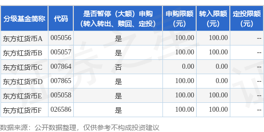 注:东方红货币C不涉及暂停办理大额申购(含转换转入、定期定额投资)业务;东方红货币D目前暂未开通转换业务。