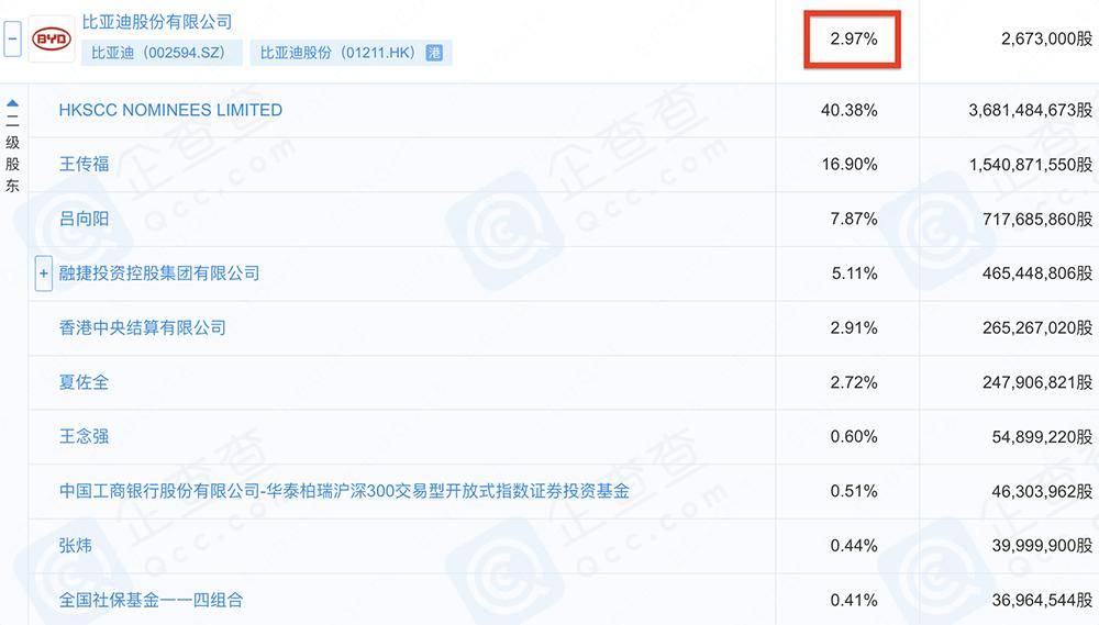 企业信用查询平台企查查显示,比亚迪股份是宏泰半导体的第12大股东,持股2.97%。