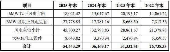 振宏股份已在这一趋势中抢得先机,其自主研发的双端法兰风电主轴、空心锻造工艺等核心技术,精准契合了大功率风机对高载荷承载与轻量化的核心需求。这种前瞻性布局的优势在订单端得到充分体现,截至2025年末,公司风电主轴在手订单达45,800.27万元,其中6MW及以上大功率主轴在手订单27,778.85万元。