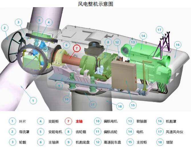 风力发电的本质是将风能转化为机械能,再进一步转化为电能。在这一过程中,主轴作为连接风机叶片轮毂与齿轮箱的关键部件,承担着传递机械能的核心作用。