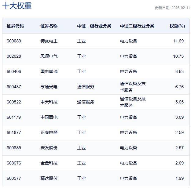 中证电网设备主题指数主要权重股