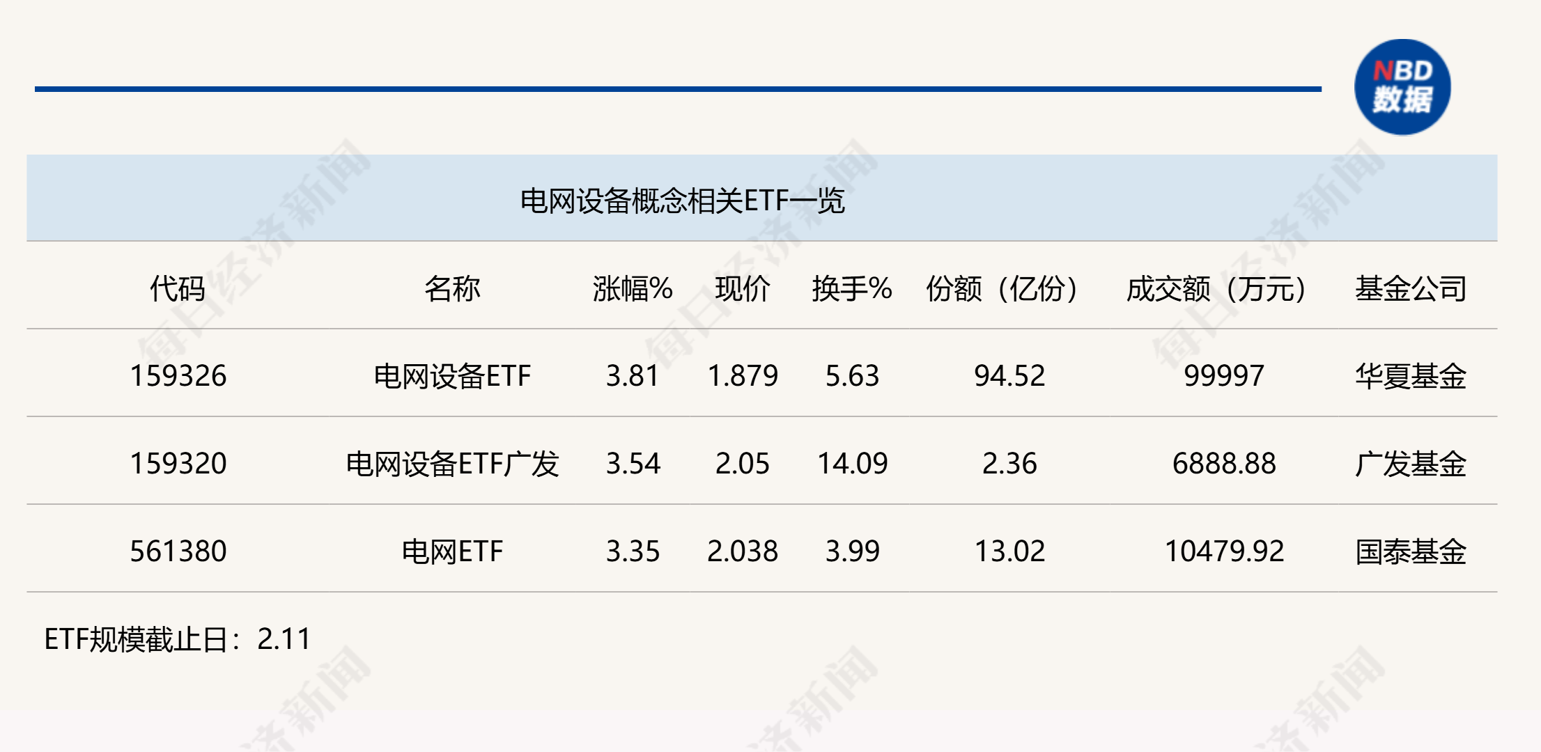 ETF涨幅榜方面,电网设备ETF(159326)半日涨幅近4%,领涨整个行业、主题ETF市场,另外两只电网相关ETF半日涨幅也在3.5%左右,而储能电池ETF表现同样强劲,半日涨幅超3%。