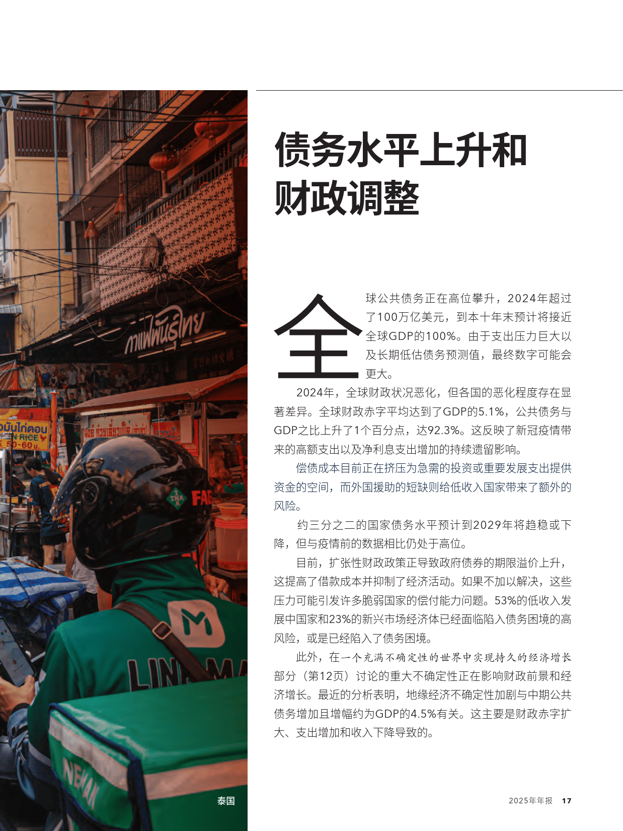 IMF2025 年年报以 “在充满不确定性的时代实现经济增长” 为核心,指出当前全球经济因持续冲突、技术转型、极端天气、贸易紧张等因素陷入高不确定性,低增长、高债务成为主要特征。2025 年全球经济增长率预测降至 2.8%,2026 年为 3%,五年增长预测创数十年新低,通胀回落放缓且同步性下降,各国央行政策分化,低收入国家受冲击尤为严重,减贫和收入趋同进程受阻,增长不足成为全球首要经济挑战。
