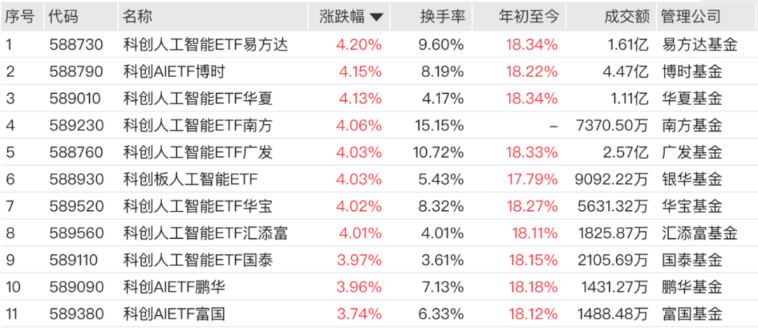 【导读】今日科创人工智能ETF强势“霸榜”,跨境ETF表现亮眼