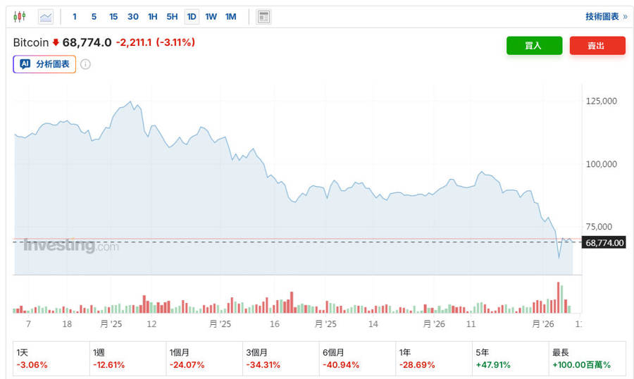 不少局外人突然发现,比特币现在只有70000美元左右了,其他虚拟货币也跌了不少。不久前,比特币价格甚至一度触及60062美元的16个月新低。这个价格相较于2025年10月创下的126000美元历史高点,近乎腰斩,较今年初也下跌了近20%。截至2月9日记者发稿前,比特币又跌破了70000美元关口。