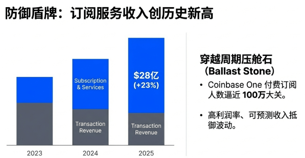 如果说交易业务是Coinbase的“进攻长矛”,那么订阅和服务收入则是其“防御盾牌”。