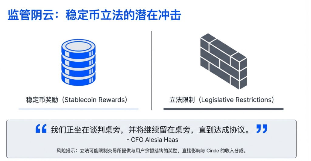 值得注意的是,美国正在推进的稳定币立法草案,可能限制交易所提供与用户稳定币余额挂钩的奖励,这一变化将直接影响Coinbase与Circle的收入分成安排。CFO Haas表示:
