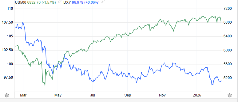正常情况下,不同资产间存在明确对冲关系:美股等风险资产下跌时,黄金等避险资产会上涨,美元走强时,大宗商品会下跌,形成“此涨彼跌”的平衡。但此次所有核心资产集体下跌,核心是“流动性收紧和极端恐慌情绪”打破了2025年原有对冲逻辑。