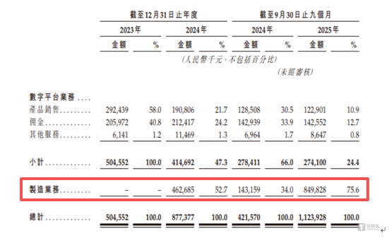可见,2023年,公司收入全部来源于数字平台业务,而自2024年起,制造业务实现的营收已超过数字平台业务,成为公司最核心的收入来源,这种在IPO申报期间悄然完成核心业务转换的情况,在同类申报企业中较为少见。