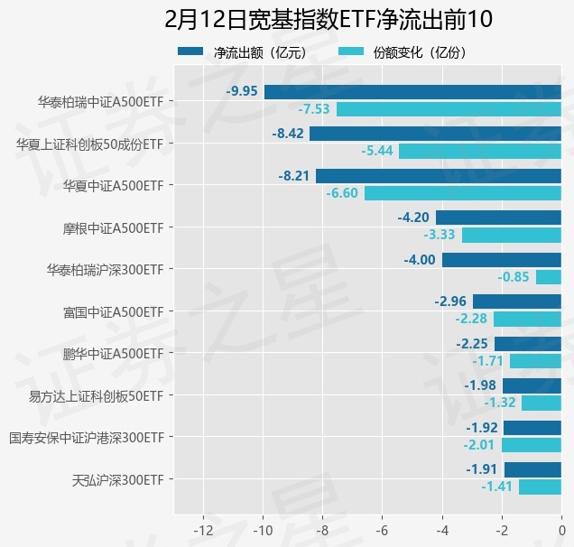 证券之星消息,2月12日宽基指数ETF基金合计资金净流出31.38亿元,近5个交易日累计净流出70.33亿元,5个交易日中出现日合计资金净流出的有3天(ETF资金流向计算公式:(当日ETF场内流通份额-前一交易日ETF场内流通份额)*当日ETF均价,计算结果仅供参考)。