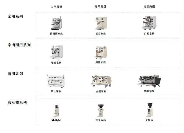 家用意式咖啡机产品系列中,入门级“猫头鹰家族”零售价2599元至3299元,定位半自动意式咖啡机入门级市场;中端“云象家族”4399元起,配置锅炉系统;高端“白鲸家族”7599元至10999元,主打高端家用市场。