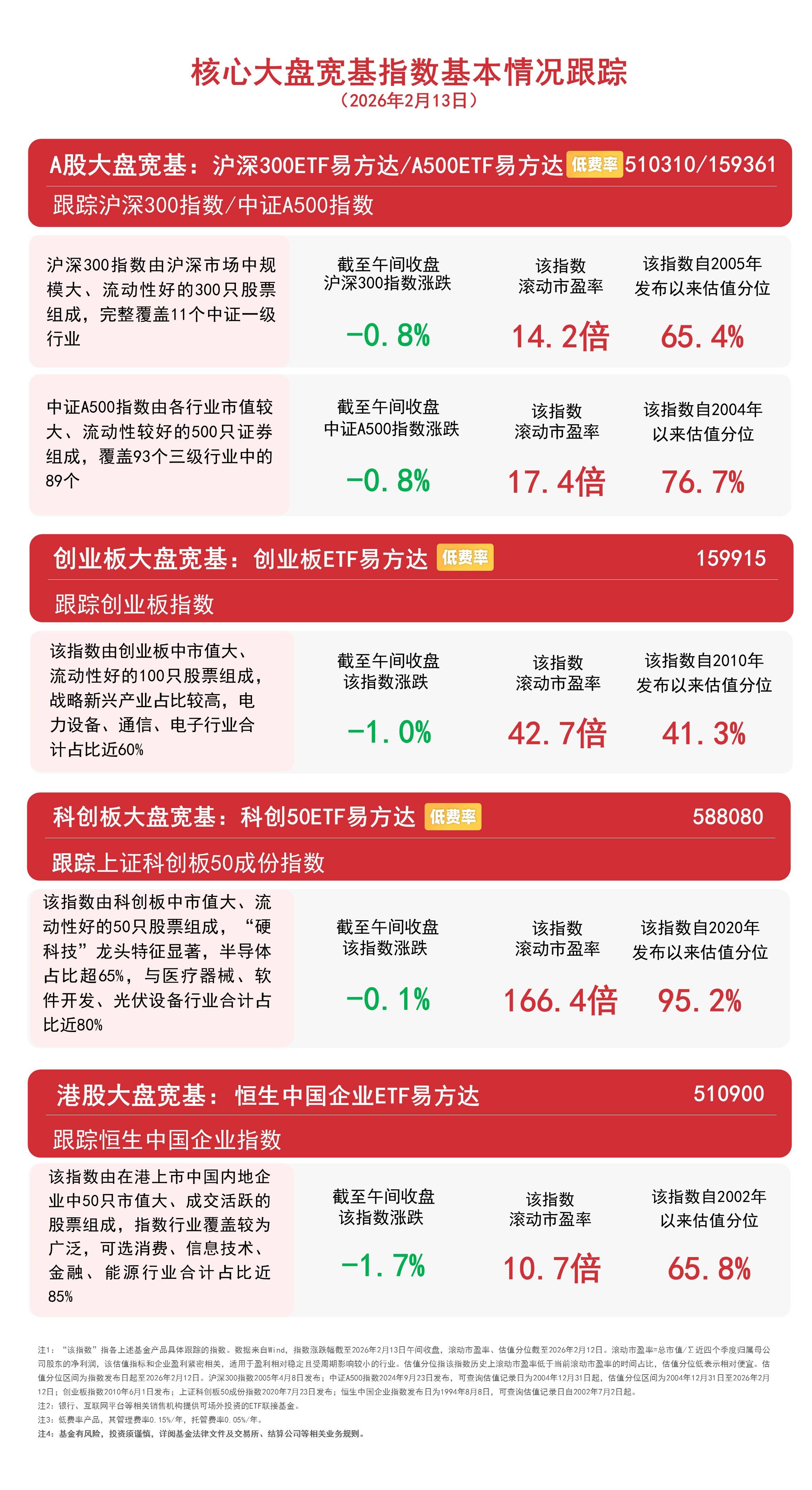 截至午间收盘,中证A500指数下跌0.8%,沪深300指数下跌0.8%,创业板指数下跌1.0%,上证科创板50成份指数下跌0.1%,恒生中国企业指数下跌1.7%。