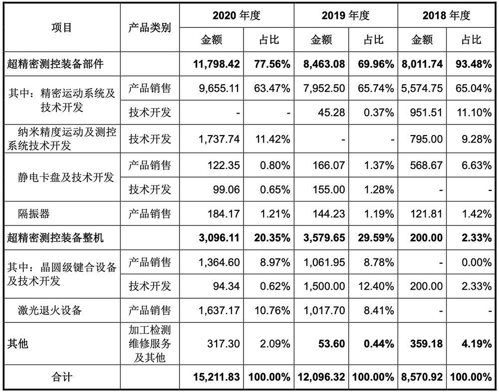 该公司的主营业务是以超精密测控技术为基础,研究、开发及生产超精密测控设备部件、超精密测控设备整机并提供相关技术开发服务。