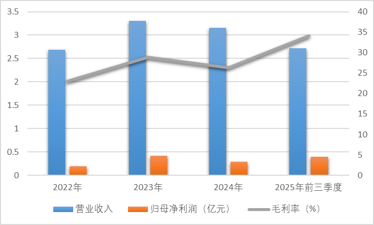 2022年至2025年前三季度(下称“报告期”),华电光大实现营业收入分别为2.69亿元、3.30亿元、3.15亿元和2.72亿元,净利润分别为1906万元、4230万元、2879万元和4032万元。