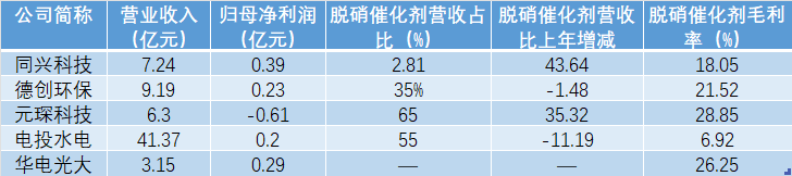 其次,与同行相比,华电光大以平板式SCR脱硝催化剂为核心优势,产销量位居国内领先水平,但收入规模与同业公司相比仍有差距。