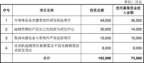 Wind数据显示,公司IPO拟募资7.35亿元,用于半导体装备关键零部件研发制造、超精密测控产品长三角创新与研发中心等四大项目。