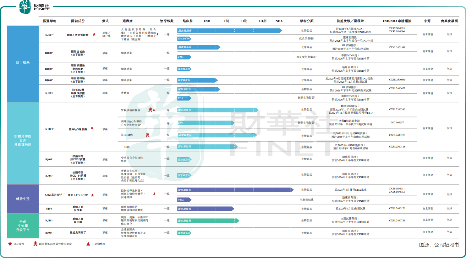 KJ103是全球首个进入III期临床的低预存抗体IgG降解酶,通过高效降解致病性IgG抗体,覆盖肾脏移植前脱敏、抗GBM病、吉兰-巴雷综合征等多个自身免疫性疾病场景,且已获得国家药监局两项突破性疗法认定,享受优先审评待遇。