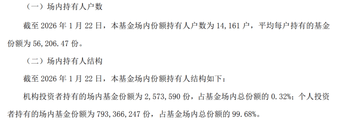 同时其持有人户数达到14161户,妥妥的“万户爆款”。这意味着,这只基金几乎完全是由散户资金堆砌起来的。