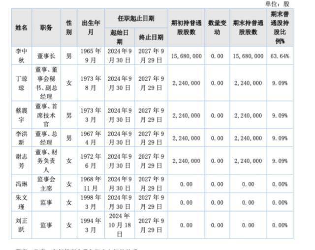 2025年中报显示,李中秋为董事长,丁琼琼为董事兼董事会秘书,董事会与高管人员名单中无独立董事。