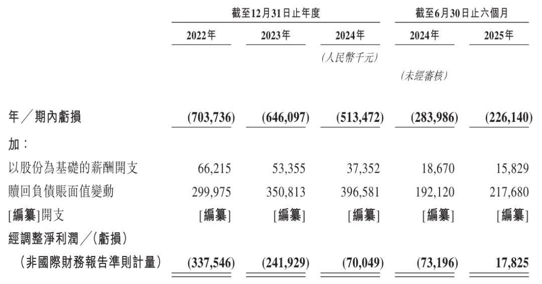 群核科技2022年、2023年、2024年经调整净利分别为-3.38亿、-2.42亿元、-7005万元;群核科技2025年上半年经调整净利为1783万元。