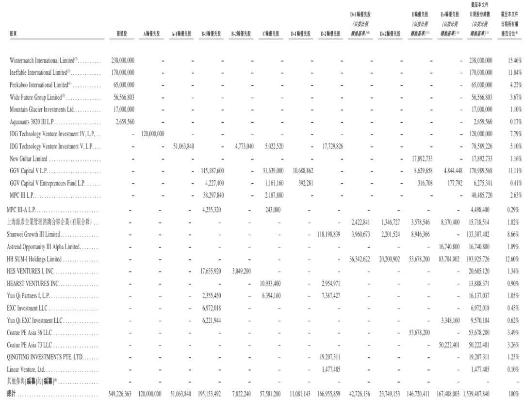 GGV Capital VL.P持股为11.11%,GGV Capital V Entrepreneurs Fund持股为0.41%,MPC III L.P持股为2.63%,MPC III-AL.P持股为0.29%,上海源彦企业管理咨询合伙企业(有限合伙)持股为1.02%,Shunwei Growth III(顺为)持股为8.66%,顺为旗下Astrend Opportunity III Alpha Limited持股为1.09%;