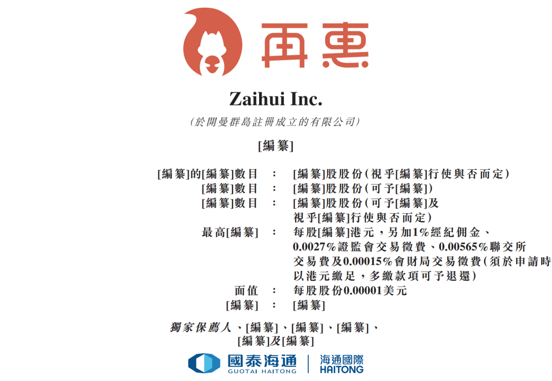 据港交所2月13日披露,Zaihui Inc.(再惠)向港交所主板递交上市申请,海通国际为独家保荐人。