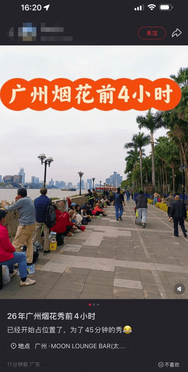 今天下午,南都君在社交媒体上看到,有网友反馈,在一些非烟花预约观赏区,已经有不少市民在占位等待。