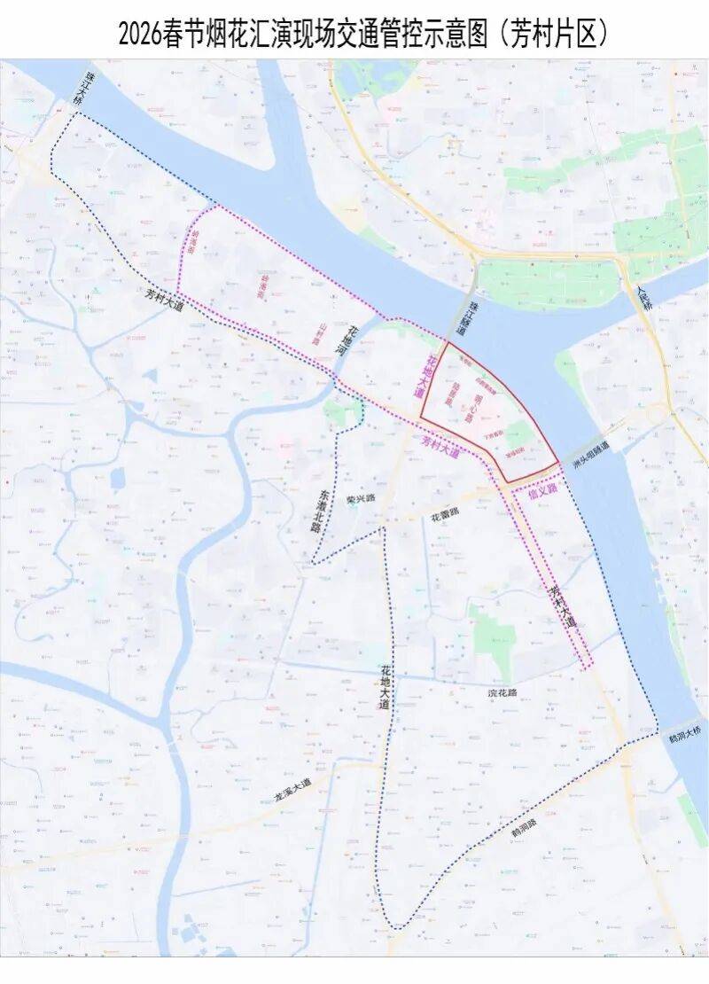 2月17日17:00至19:00视情况、19:00至活动结束,对芳村大道(浣花路口至花地大道路口路段)等区域(路段)实施临时交通管理措施。