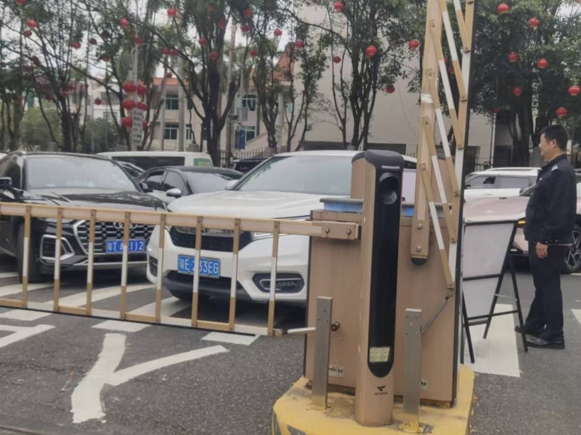这天,彭锦杨和两位同事当白班,值守这个“暖心驿站”。七点整,师傅们准时到岗。开放时间未到,院外已有车辆等候。七点半,闸门抬起,车流涌入,机关大院秒变繁忙枢纽。“都说西樵山、千古情景区火,我看我们这大院停车场,今天也和景区一样火!”彭锦杨话音未落,紧张的工作已铺开。