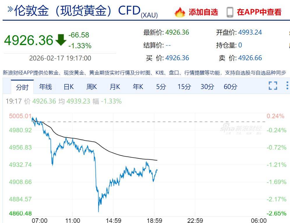 与此同时,部分中概股表现相对强劲,禾赛科技在盘前上涨接近4%,金山云的涨幅也超过了3%。然而,人工智能相关的股票则出现了下行压力,SAP SE跌幅接近3%,Applovin下跌约2%。此外,黄金和白银价格在盘中出现了剧烈波动,白银一度跌幅接近5%,而黄金也短暂跌破了4900美元/盎司,现价稍微回升至4930美元下方。现货白银价格则维持在74美元上下。