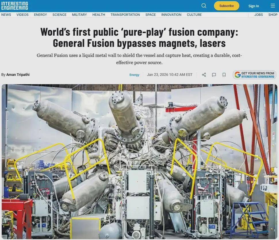 2026年的开年,核聚变赛道就抛出了一枚重磅炸弹。1月22日,加拿大核聚变技术公司General Fusion宣布,将通过SPAC(特殊目的收购公司)模式与Spring Valley Acquisition Corp. III合并,整体估值约10亿美元,预计年中完成交割,登陆纳斯达克。这意味着,人类历史上首家纯核聚变上市公司,即将诞生。