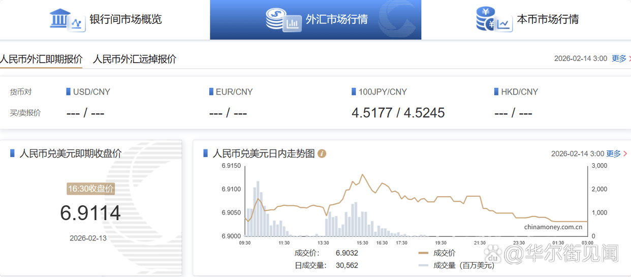 在岸人民币兑美元(CNY)北京时间03:00收报6.9032元,较周四夜盘收盘涨1点。成交量305.62亿美元。