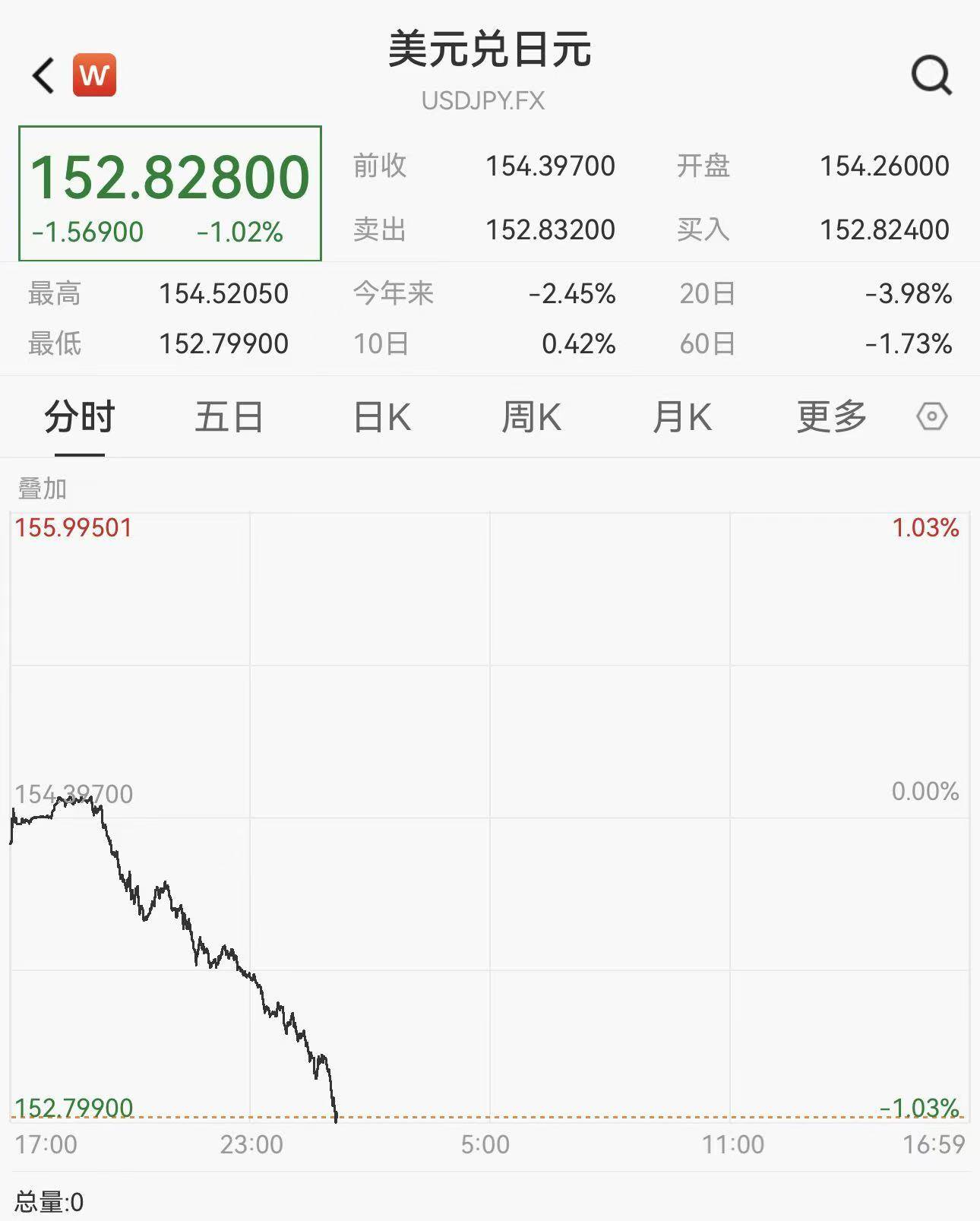 上证报中国证券网讯(记者 陈佳怡)2月11日,日元对美元震荡上行,盘中升破153关口。截至北京时间14时10分,日元对美元报152.828,涨幅超1%。