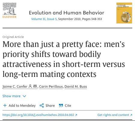 研究核心结论十分直白:男性的择偶偏好,会随着情境(短期伴侣vs长期伴侣)发生明显转变,而女性则没有这种“双标”倾向,始终更看重脸部信息。