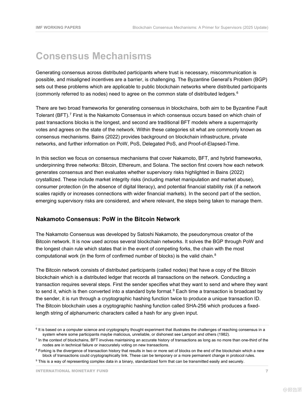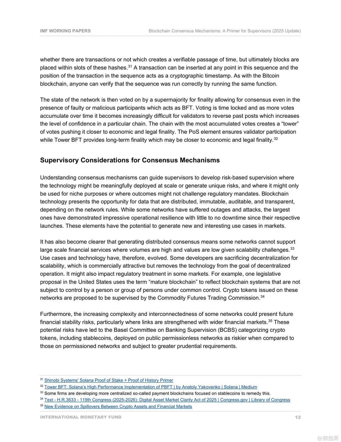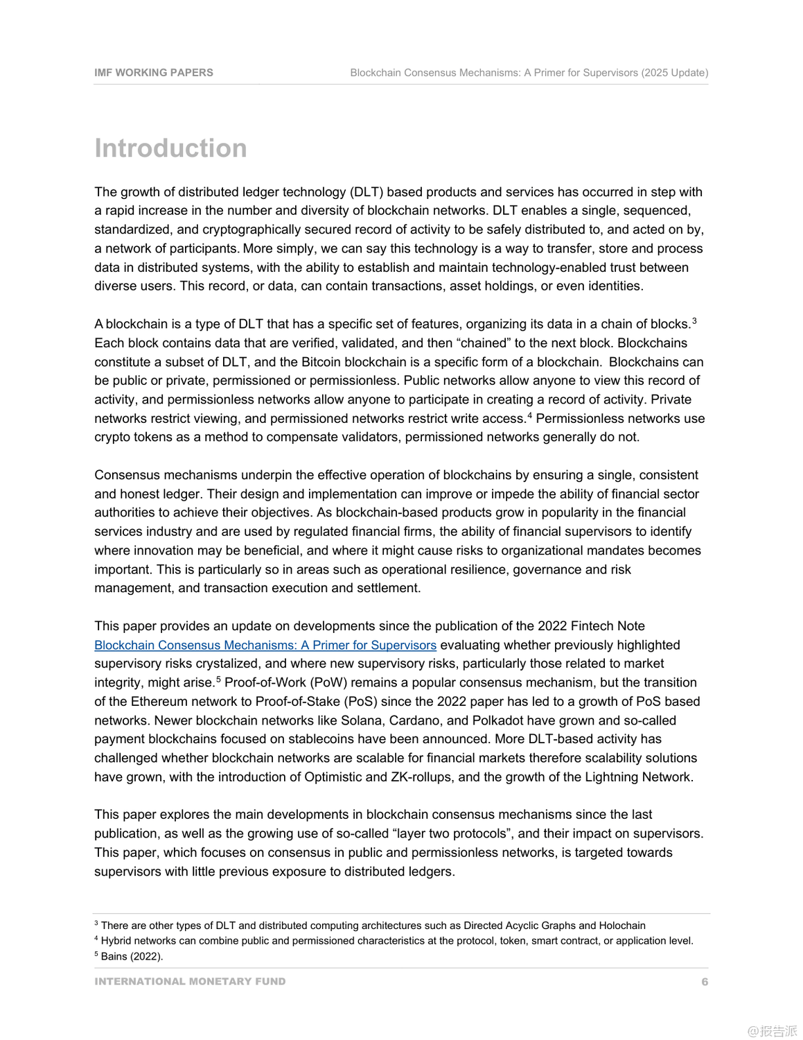 国际货币基金组织(IMF)于2025年发布的《区块链共识机制:监管者入门(2025年更新)》是一份面向金融监管机构的技术政策指导文件,旨在帮助监管者理解主流区块链网络的共识机制及其潜在风险。