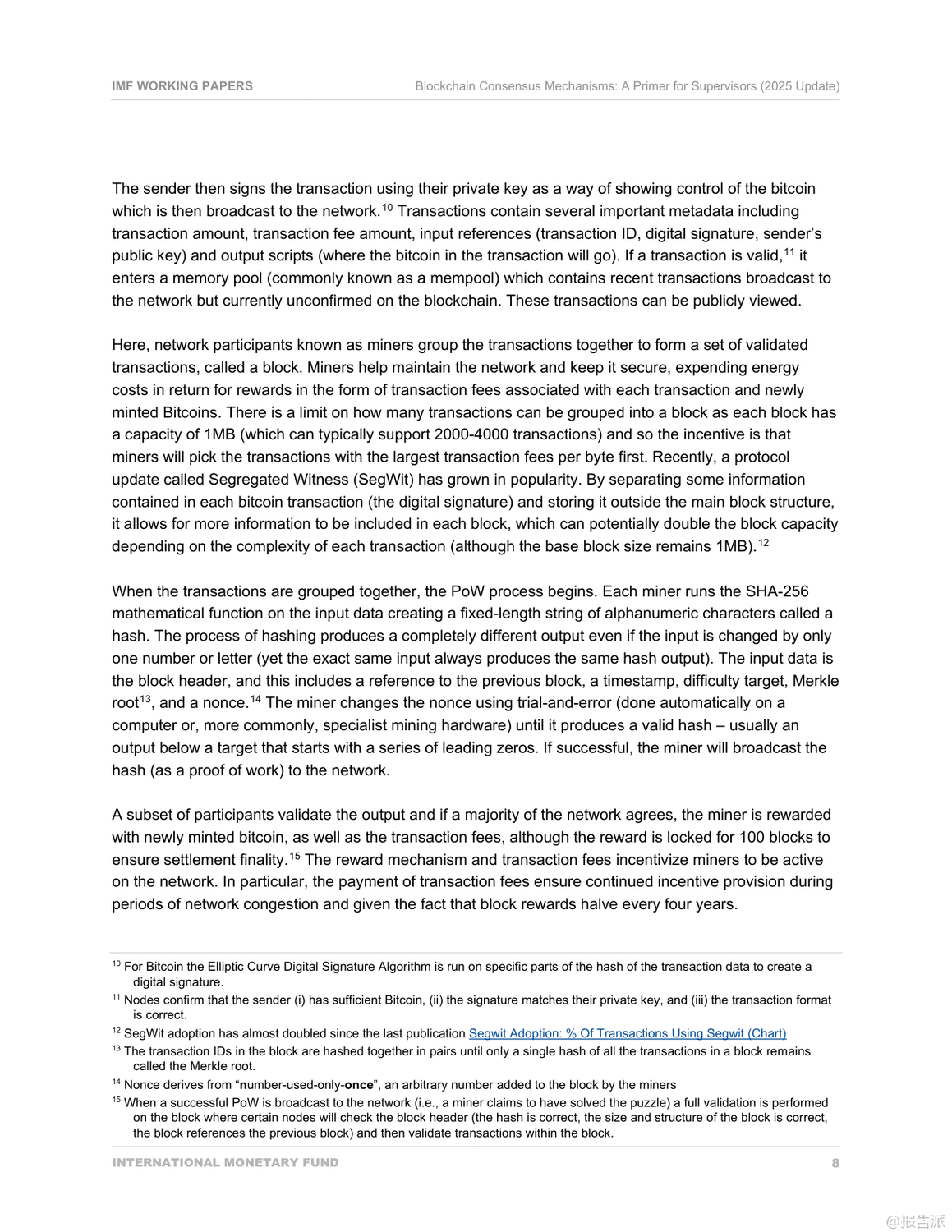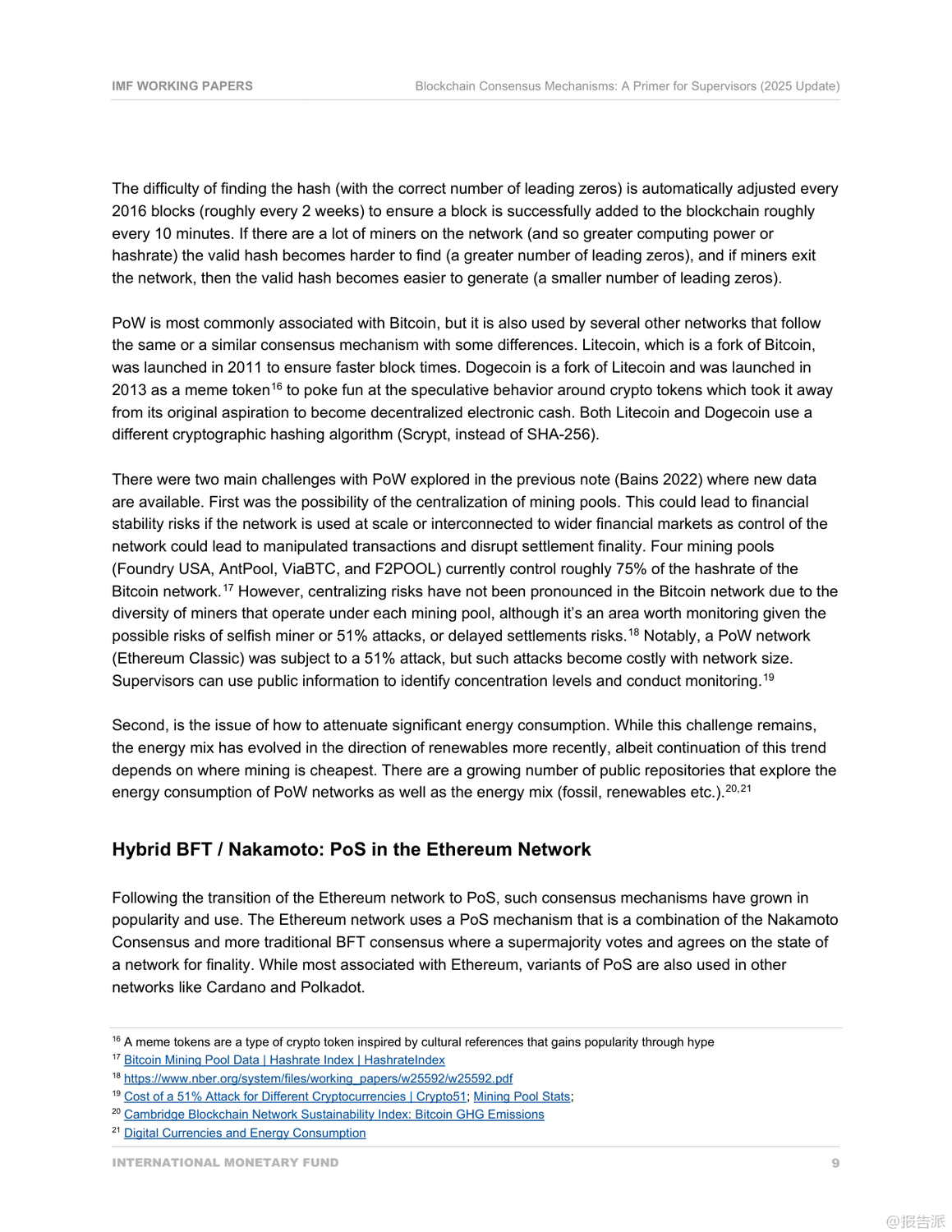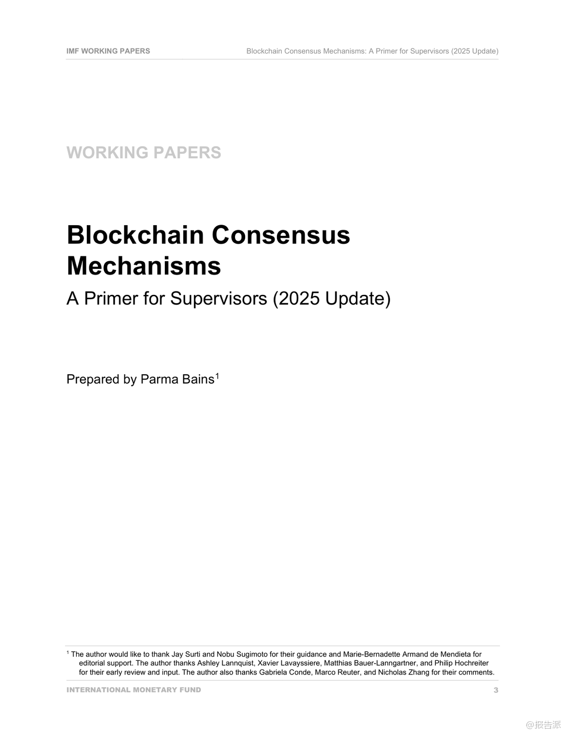 国际货币基金组织(IMF)于2025年发布的《区块链共识机制:监管者入门(2025年更新)》是一份面向金融监管机构的技术政策指导文件,旨在帮助监管者理解主流区块链网络的共识机制及其潜在风险。