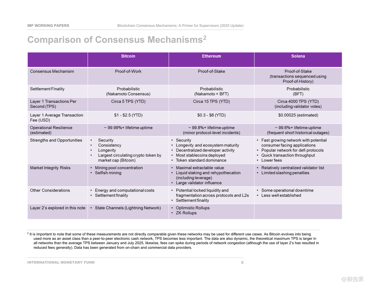 IMF指出,不同共识机制在安全性、去中心化与可扩展性之间存在“三难困境”,直接影响其适用于金融场景的能力。