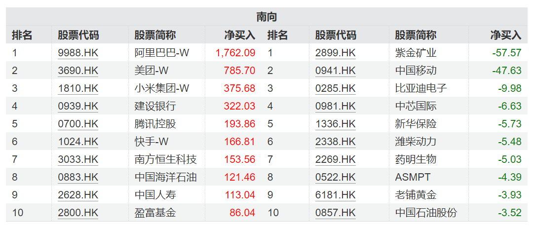 图:南向资金近1年前十大活跃股情况