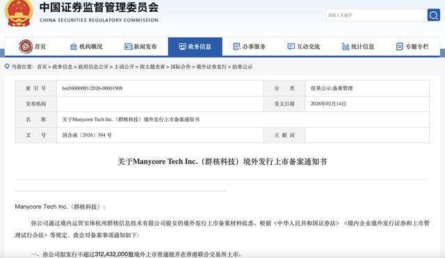 瑞财经 吴文婷近日,群核科技(Manycore)赴港IPO获中国证监会备案,公司拟发行不超过312,432,000股境外上市普通股并在香港联合交易所上市。