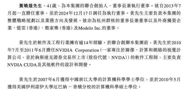 资料显示,黄晓煌,41岁,为集团的联合创始人、董事长兼执行董事。其自2013年7月起一直担任董事,并于2024年12月17日调任为执行董事。黄晓煌主要负责集团的整体战略规划以及业务方向及发展。其亦为杭州群核的董事长兼董事以及外商独资企业、亿云(香港)、酷家乐(香港)及Modelo Inc.的董事。