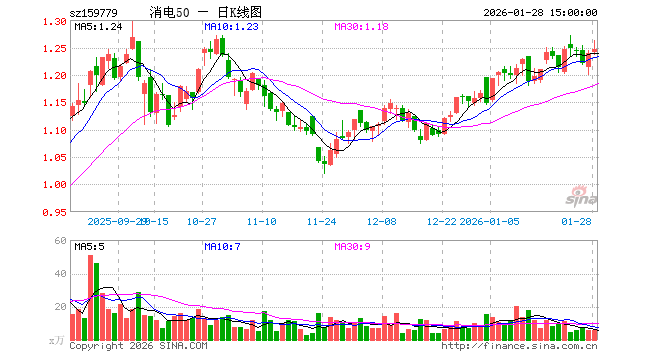 1月28日,消费电子50ETF(159779)涨0.65%,成交额715.12万元。当日份额减少100.00万份,最新份额为1.89亿份,近20个交易日份额减少3400.00万份。最新资产净值计算值为2.35亿元。